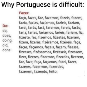 And the past tense (pretérito) is so similar, yet different. Take the verb “ir,” for instance. In Spanish and Portugal, the first person singular in both is “fui.” Yet, while the third person singular is close in the two languages, a miss is as good as a mile: fue (Spanish) and foi (Portuguese).