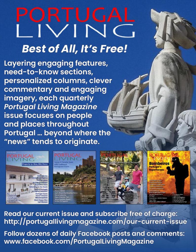 Our continuing commitment is to provide free subscriptions to everyone who wants to read Portugal Living Magazine, with advertising covering the publishing costs of production and distribution. Alas, we’re not there yet. Deficit spending has been funded from the pockets of our founder.