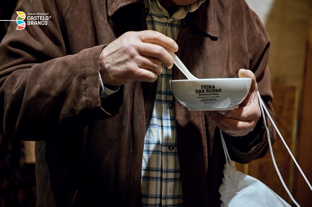 We went to the annual “Feria de Sopas” (Soup Festival) in Escalos de Cima, the big brother of the parish (freguesía) to Lousa, where we had lived for our first three years in Portugal. Accompanying us were the two guys who had bought our house there. A great deal: soup bowl, reusable and environmentally friendly stash bag, plus three tokens good for our choice of three soups. All for five euros. And the heaping bowls of soup are plentiful and delicious.