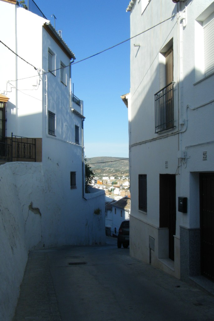 Immediately thereafter, the road lurches left, into another alley-like connection. That’s where our house is located–directly opposite a so-called “street” branching off to the left. Though it has a name (C/Arcos), only two-wheel vehicles — bicycles, scooters, and motos — can pass through, as there’s a low-hanging archway just a few meters ahead.